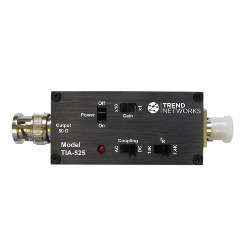 The TIA-525, 527 and 952 series have BNC outputs for direct connection to your oscilloscope or digitiser. The TIA-1200, 2000 and 3000 use a type K SMA female output connector. The TIA525 offers a free space option. Patch cords and adaptors can be supplied to mate with various fibre optic connectors. The TIA-525 and 527 have dual power capability, battery and external universal power supply.