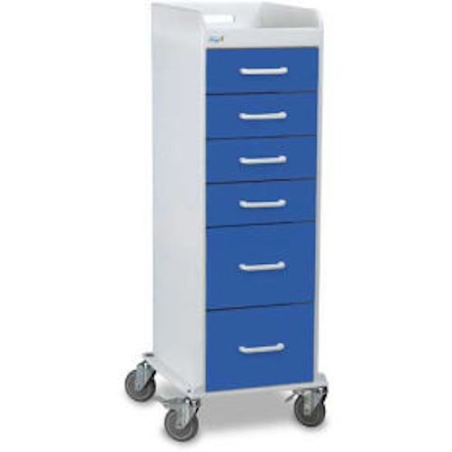 TrippNT 51089 Global Blue Polyethylene Tall Locking 6 Drawer Cart