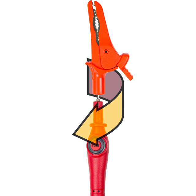 The UEi ATL92 is a specialized test lead designed for IRT803 and IRT807 Insulation Resistance Tester. The lead features a remote probe test button, a 3-plug connection, standard insulation, and an overall length of 67.5 in. It includes a red alligator clip and a removable test lead cap which reduces the exposed length of the lead to allow CAT IV testing.