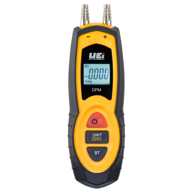 The DPM is a compact and easy-to-use differential manometer with wireless functionality. Easily view readings on display or wirelessly via the Free App, UEI LINK