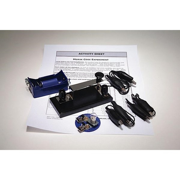Discover how people communicated over long distances before the telephone was invented. The Morse code experiment kit is designed to show the principle of a telegraph. The kit consists of a "D" cell battery holder, a telegraph key, a miniature lamp with holder, and three connector cords. Instructions are included.