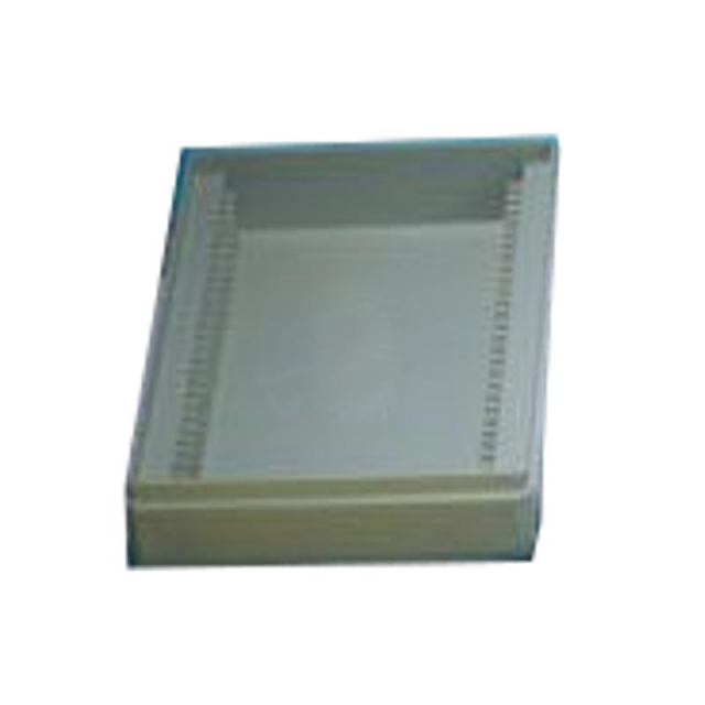 Sturdy two-piece molded polystyrene slide boxes hold standard 75mm x 25mm microscope slides. The bottom section has numbers engraved for easy reference, and the inside of the lid carries a numbered slide index.