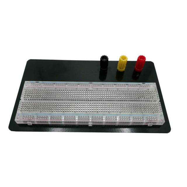 The 630-point solderless breadboard is built with high-quality construction that can withstand repeated use. It includes color coordinates that are screen-printed for easy reference. This breadboard is perfect for investigating circuit designs and prototyping. It accepts most electronic components including integrated circuits and transistors. The breadboard comes with three binding posts and four rubber feet.