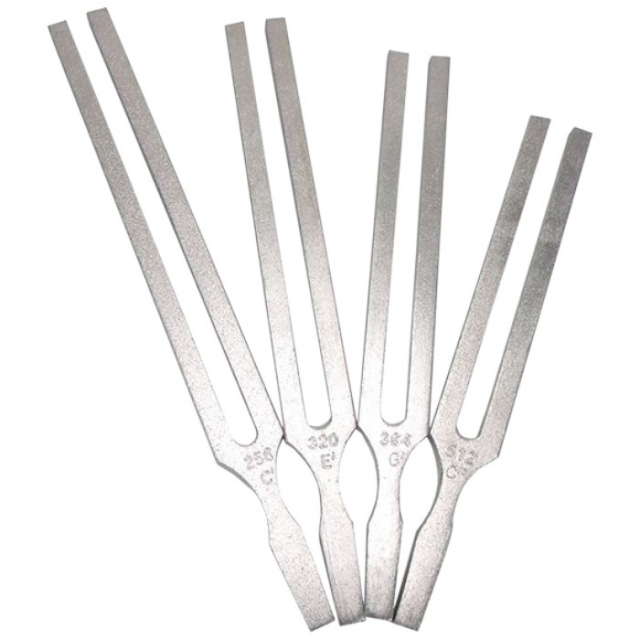 Tuning Fork Set of 4 contains one each of 256 Hz, 320 Hz, 384 Hz, and 512 Hz forks.