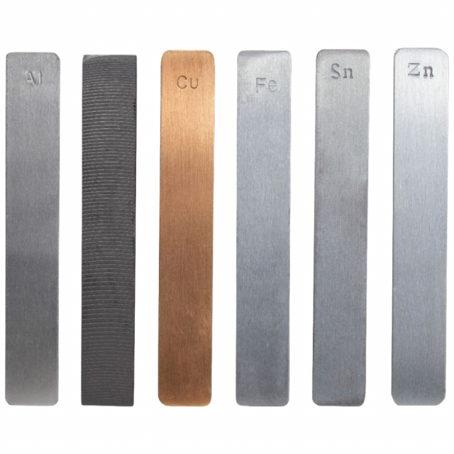 United Scientific Supplies, UNELCSET, Set of 12 Electrodes (2 Each) Aluminum, Copper, Tin, Iron, Zinc, and Carbon
