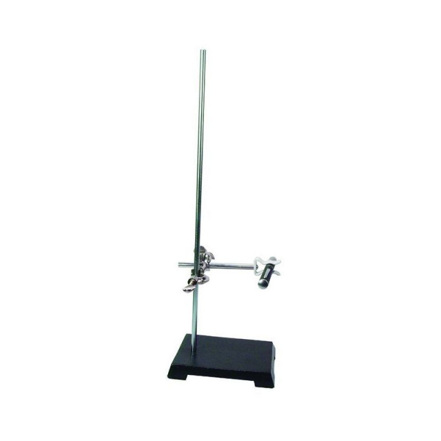 The laser support rod is 8" long and has a vinyl coated clip to hold the laser pointer securely without scratching. The heavy cast iron base is 4" X 6" with black enamel finish. The 18" long zinc-plated steel rod has a diameter of 5/16". The swivel clamp gives you the freedom to adjust the angle of the laser pointer360°. The clamp is plated steel and accepts rods up to 3/4"" diameter (19 mm). Length across clamps is 4.5". The red laser pointer operates on a push-button switch and are housed in a rubberized aluminum pen-style case. The laser is Class 3R and is 6" long x 0.5" diameter. Red laser pointer has a maximum output of 5mW and a wavelength of 650nm (+/- 10nm). Range of beam is 100 meters. Expected operating life is 1000 hours. Operates on two"AAA" batteries (which are included).
