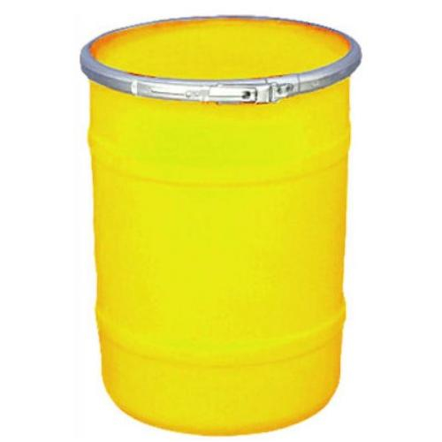 US Roto Molding, SS-OH-15 PL/SR-YL, 22-1/2" Yellow 15 Gallon Open Head Drum Plain Lid, Side Lever Lock Ring