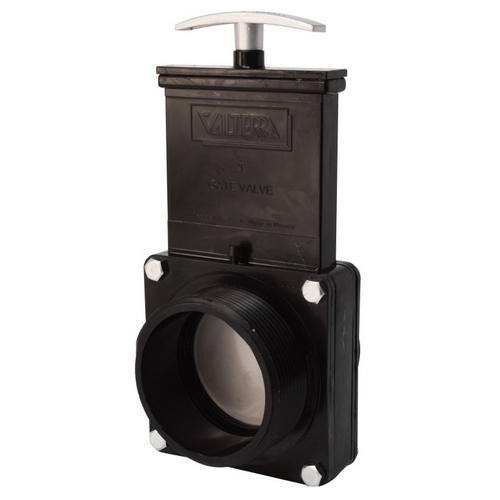 Valterra, 5304, 3" ABS Black MPT x MPT Ends Gate Valve with Stainless Steel Paddle & Metal Handle