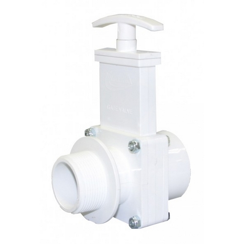 Valterra, 6105, 1-1/2" PVC White MPT x Female Slip Ends Gate Valve with Plastic Paddle & Handle