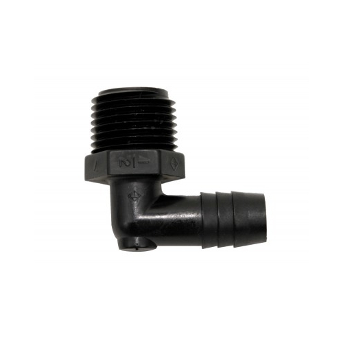 1/2" MPT x 1/2" Barb 90 Deg Elbow Black Male Adapter