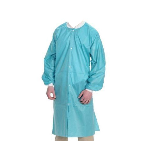 Durable medium-weight unisex lab coat made for protection and comfort with SMS material that is fluid resistant, highly breathable, and fire retardant.