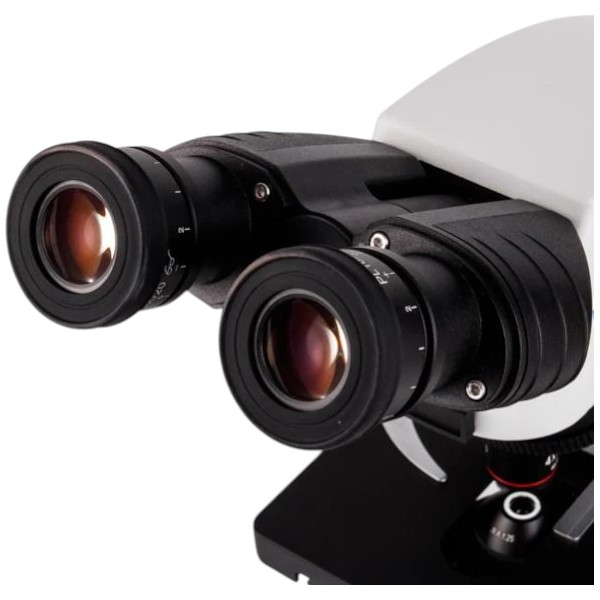 - Eyepieces: PL 10X/20 mm with rubber eyecups and ± 5 mm diopter adjustment in both eyepieces.
