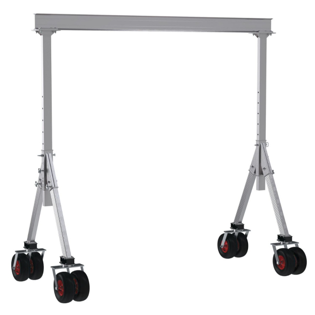 Vestil, AHA-4-12-12-PNU, Adjustable Height Aluminum Gantry Cranes with Pneumatic Tires, 10' to 12'6"