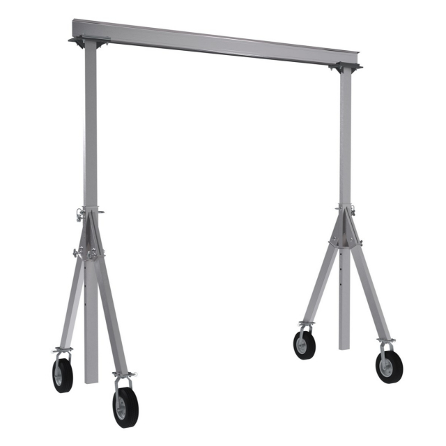 The Adjustable Height Aluminum Gantry Crane with pneumatic casters are ideal for the manufacturing and maintenance facilities. The aluminum construction is lightweight, yet strong for long lasting durability through the harshest of environments. Do not move units while loaded. Uniform capacity is 1,500 pounds.