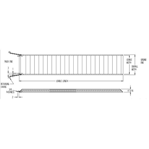 The Aluminum Walk Ramp enables delivery men, shippers, and receivers to load and unload trucks when docks are unavailable. Ramps feature a 1-1/2" high safety curb on each side. Heavy duty steel chains with steel grab hooks are attached to each side of ramp for safely securing ramp to truck. Constructed of strong aluminum alloy with non-skid tread surface. The ramp is lightweight and easy to handle. Available in either an overlapping style that rests on the truck bed, suffix "A", or steel hook style that mounts onto the truck extensions, suffix "B".