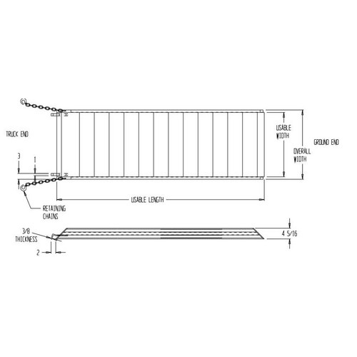 The Aluminum Walk Ramp enables delivery men, shippers, and receivers to load and unload trucks when docks are unavailable. Ramps feature a 1-1/2" high safety curb on each side. Heavy duty steel chains with steel grab hooks are attached to each side of ramp for safely securing ramp to truck. Constructed of strong aluminum alloy with non-skid tread surface. The ramp is lightweight and easy to handle. Available in either an overlapping style that rests on the truck bed, suffix "A", or steel hook style that mounts onto the truck extensions, suffix "B".