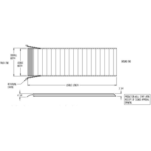 The Aluminum Walk Ramp enables delivery men, shippers, and receivers to load and unload trucks when docks are unavailable. Ramps feature a 1-1/2" high safety curb on each side. Heavy duty steel chains with steel grab hooks are attached to each side of ramp for safely securing ramp to truck. Constructed of strong aluminum alloy with non-skid tread surface. The ramp is lightweight and easy to handle. Available in either an overlapping style that rests on the truck bed, suffix "A", or steel hook style that mounts onto the truck extensions, suffix "B".