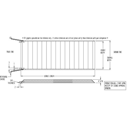 The Aluminum Walk Ramp enables delivery men, shippers, and receivers to load and unload trucks when docks are unavailable. Ramps feature a 1-1/2" high safety curb on each side. Heavy duty steel chains with steel grab hooks are attached to each side of ramp for safely securing ramp to truck. Constructed of strong aluminum alloy with non-skid tread surface. The ramp is lightweight and easy to handle. Available in either an overlapping style that rests on the truck bed, suffix "A", or steel hook style that mounts onto the truck extensions, suffix "B".