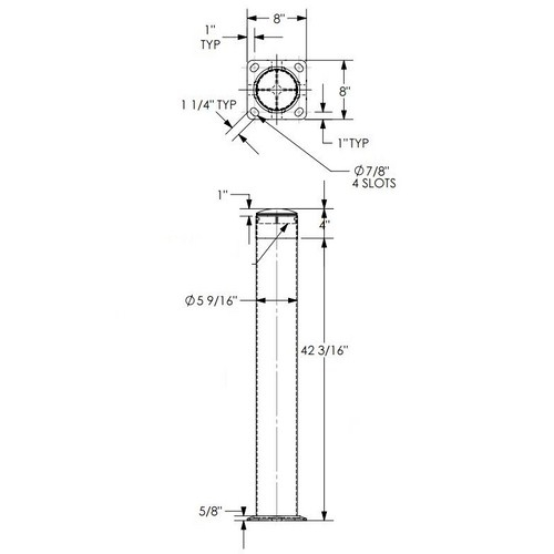 Bollards can be used both indoors and outdoors to protect work areas, racking and personnel. Plastic caps are removable on ,1-3/4, 4-1/2" and 5-1/2" diameter units. Steel caps are welded on the 6-5/8, 8-5/8" diameter units. Base plate measures 8" x 8", on the 4.5 and 5.5 units (4"x4" on the 1-3/4" units). Mounting kits and replacement caps available. Welded steel construction.