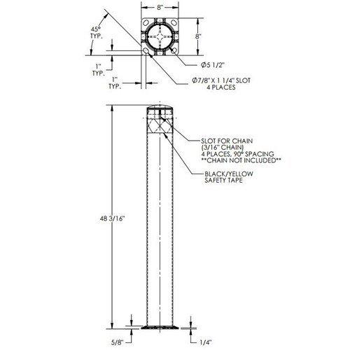 Vestil, BOL-JK-48-5.5, Steel Pipe Bollard with Slots, 48 x 5-1/2"