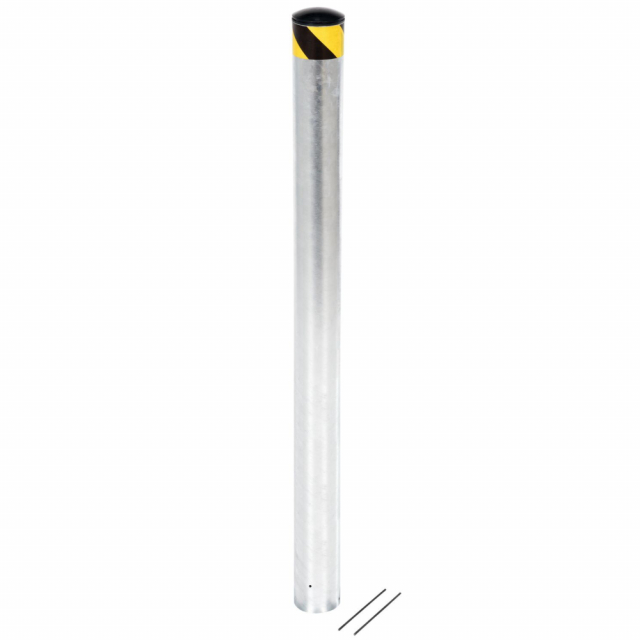 The extra length of the Pour in Place Bollard allows you to maintain the needed height while fixing the bollard in concrete. Bollard comes with slide through lag anchors and a removable cap (except models with outside diameter of 6-5/8" are open-topped, no cap) so the bollard can be filled with concrete to increase its strength and durability. Baked-in powder-coated or hot dipped galvanized finish for added toughness. Assembly required.