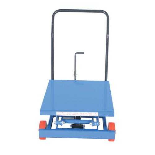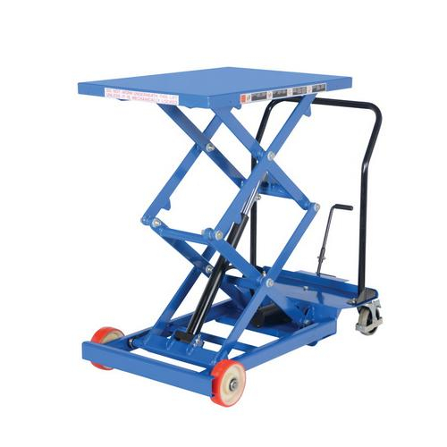 The Premium Scissor Lift Cart is constructed of heavy duty steel and designed to withstand the most demanding industrial environments. The simplicity and compactness of these products make them ideal for lifting and transporting loads, order-picking, die handling, and for use in support of assembly operations. There is little exertion required to raise and lower the deck due to the high quality foot-actuated, single speed hydraulic pump. The hydraulic system is equipped with an overload protection valve. Each cart has safety stops to prevent an empty deck from lowering while performing maintenance. A unique tilt-up table top allows for safe and easy maintenance. The two rigid front casters and two rear swivel polyurethane casters with brake provide a high degree of maneuverability; each swivel wheel is protected by guards and is equipped with brakes. Features an internal hydraulic velocity fuse in each cylinder.