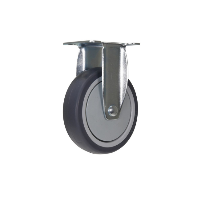 Thermoplastic polyurethane rubber casters provide low resistance when maneuvering with heavy loads. Resistant to chemicals, acids, bases, alcohol, salts, and steam. Gray tread color. Wheel core is constructed of polypropylene.