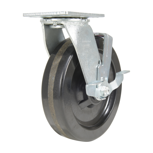Phenolic wheels have a high resistance to impact damage, while providing protection for floors in commercial and industrial settings. Resistant to water, oil, and grease. It is also spark resistant and operates in a wide temperature range. Black tread color. Wheel core is phenolic. 100 Shore A.