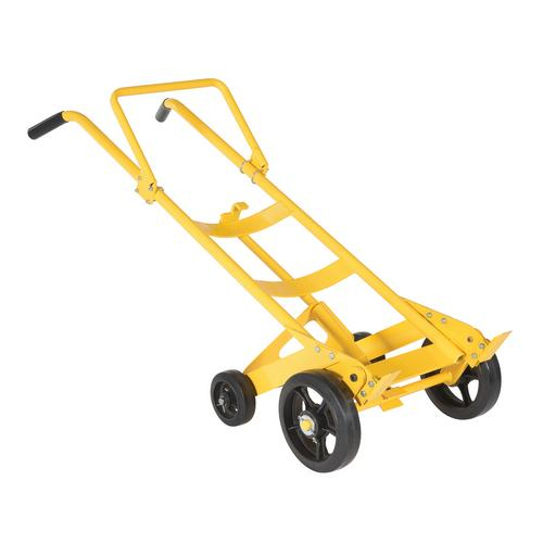 Designed for moving 55 gallon steel drums. Features a spring mechanism, which allows for easier tilting of fully-loaded drums. Four-wheel design for easier drum transportation when tilted. Top loop handle allows for easier control when moving. Drum is secured to truck with an adjustable height drum hook bar. Removable drum hook bar includes built-in bung nut wrenches. Capacity is 1,000 pounds. Steel construction with powder coat finish.