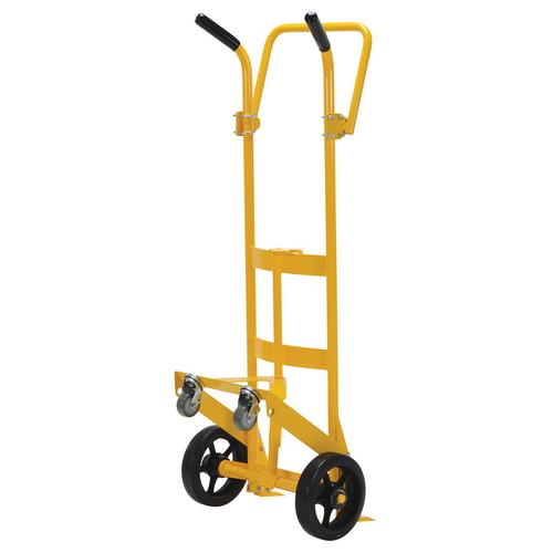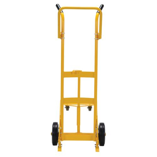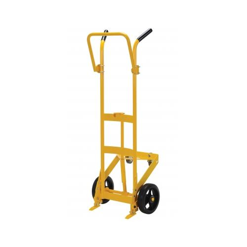 Designed for moving 55 gallon steel drums. Features a spring mechanism, which allows for easier tilting of fully-loaded drums. Four-wheel design for easier drum transportation when tilted. Top loop handle allows for easier control when moving. Drum is secured to truck with an adjustable height drum hook bar. Removable drum hook bar includes built-in bung nut wrenches. Capacity is 1,000 pounds. Steel construction with powder coat finish.