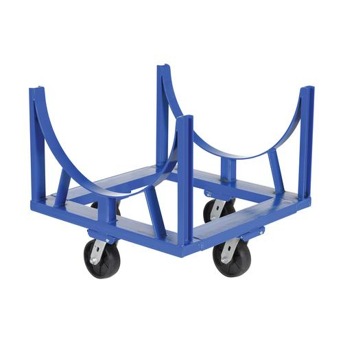 Move and store pipe, channel, bar stock, barrels, or drums with these Heavy-Duty Cradle Carts. A large open design that makes loading and unloading by fork trucks and slings easy. All welded construction. Wheels are mounted in a diamond pattern to allow the truck to tilt when going over thresholds and turnabout on its own center.