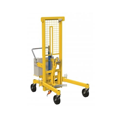 Unique portable unit designed to lift and transport steel, plastic, and fiber drums with a top lip. Steel jaw securely grips the top lip of the drum. Straddle legs rotate for access to drums on pallets. The push handle folds down for easy access to ratchet and foot pump. All welded steel construction. Baked-in powder coated toughness with a safety yellow finish.