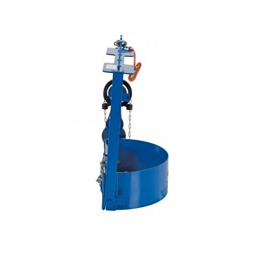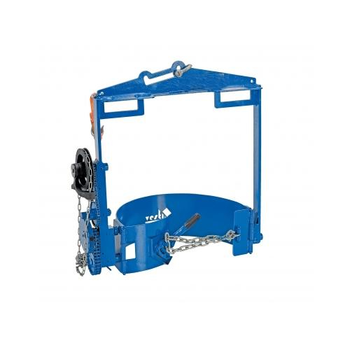 Rotate and position a fully loaded 55 gallon steel drum with ease. Use with an overhead hoist or a fork truck. Fork pockets measure 5-1/2"W x 1-15/16"H usable. Features a chain crank that allows the operator to rotate 360 Degree drums that are out of reach. Drums are held in place with a drum locking system.
