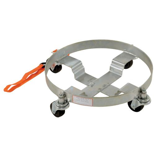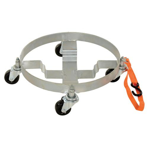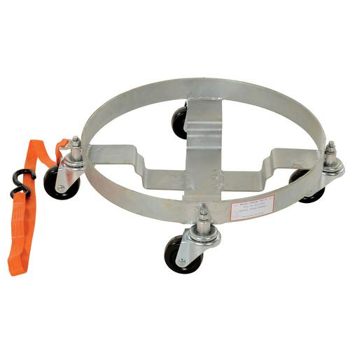 These multi-purpose dollies have a high polished bright zinc finish for corrosion resistance and (4) 3" x 1¼" swivel casters. Each unit comes with a 4 foot long nylon pull strap that helps in transporting down aisles or over thresh holds. Rubber-coated hook allows strap to hook on top of drum for storage.Tri Dolly, series DRUM-TRI, will transport 5 gallon pails, 30 gallon drums or LP gas tank.