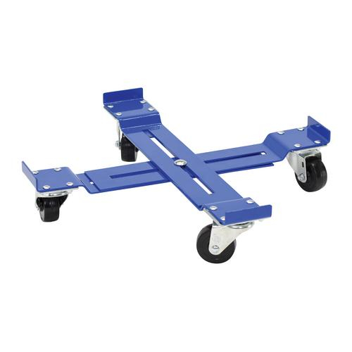 This cross arm dolly accommodates 30, 55, 85 and 95 gallon drums or adjust to fit multiple square and rectangular crates. There are 4 (3") swivel casters. Blue baked-in powder coat finish for sustained toughness. Ships unassembled.