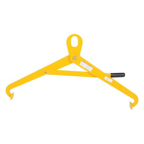 Made to lift drums with an overhead hoist. Suitable for open top or tight head steel drum which have a ring. To operate set locking lever in locked open position. When central over the horizontal drum release lever to allow hooks to fall and locate under both rims. Hook automatically engage as it is lifted and disengage as drum is set down.