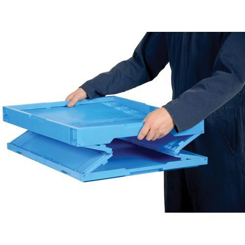 Folding Container requires minimum storage space when not in use. Units feature lightweight construction for easy transport. Constructed of plastic material for economical and resourceful use.