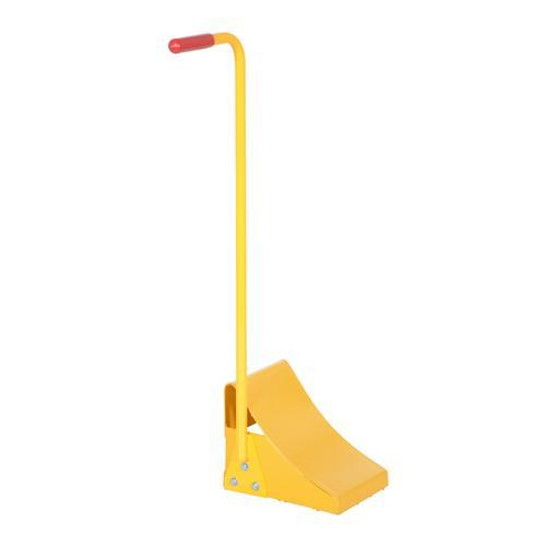 Ergonomically designed to make it easy to move wheel chocks in and out of position under trailer wheels. Reduce the risk of back, knee, and foot injuries. Handle is constructed of steel and includes a yellow baked-in powder-coated toughness. Assembly required.