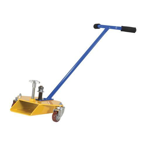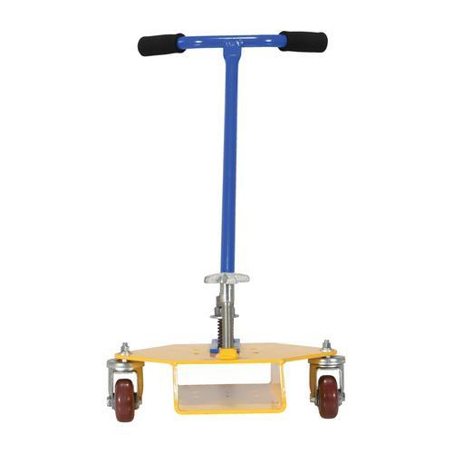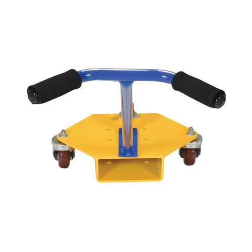 After transporting the fork to the forklift, rotate the handle 90° then slide the fork onto the mast. The Fork Caddy has easy-grip handles and rolls smoothly on two swivel casters. A star knob secures the caddy onto the fork to keep it in place while transporting. The comfort-grip handle pivots up to 180° to allow for easier mobility. The Fork Caddy is lightweight and small enough for easy storage as well.