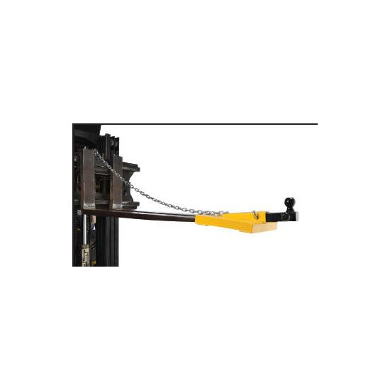 The Fork Lift Hitch is a superb addition to most manufacturing and maintenance facilities. Strong steel construction allows for long term use, even in the harshest of conditions. The hitch includes a yellow finish for clear visibility. To use slide the fork lift forks in to the unit and secure safety chain to fork lift. Once in place, the unit is ready to be hitched to the desired equipment. Includes 56" long chain to secure to fork lift.