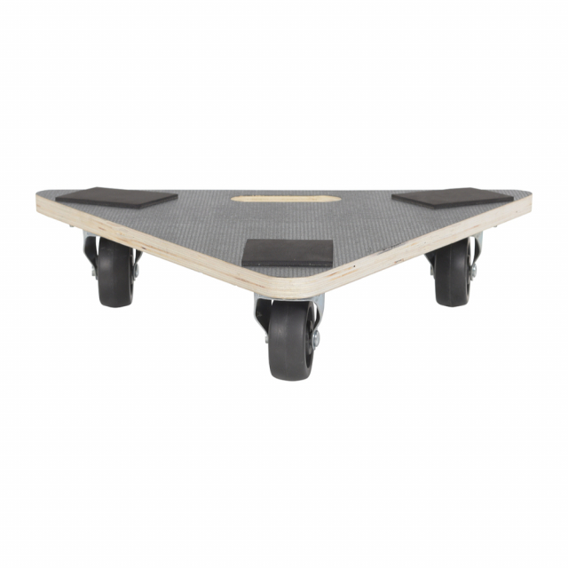 Unit maneuver on four (4) swivel hard rubber casters or non-marking poly-on-poly casters. Solid Deck Hardwood Dollies are constructed of poplar.