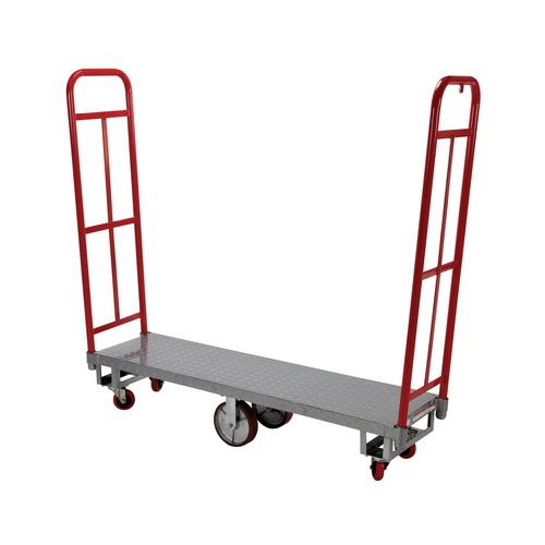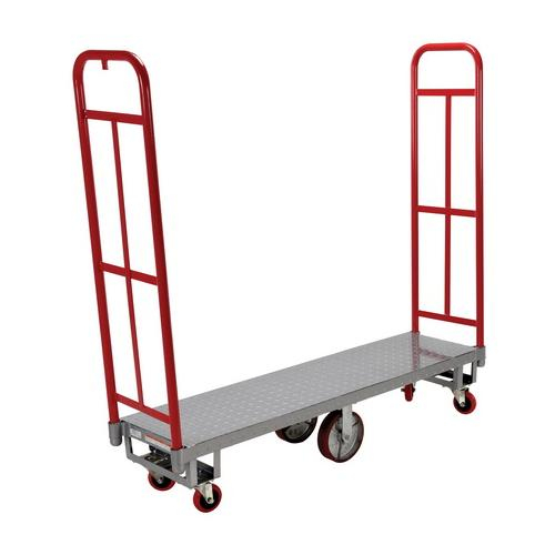 This High End Platform Truck turns conveniently on center wheels and is stabilized by casters. The combined six (6) caster design and narrow platform allows the operator to maneuver through doorways and aisles. Ideal for transporting and stocking small packages in warehouses, shopping malls, grocery stores, post offices, and schools. Steel platform construction with steel uprights. Powder coat finish.