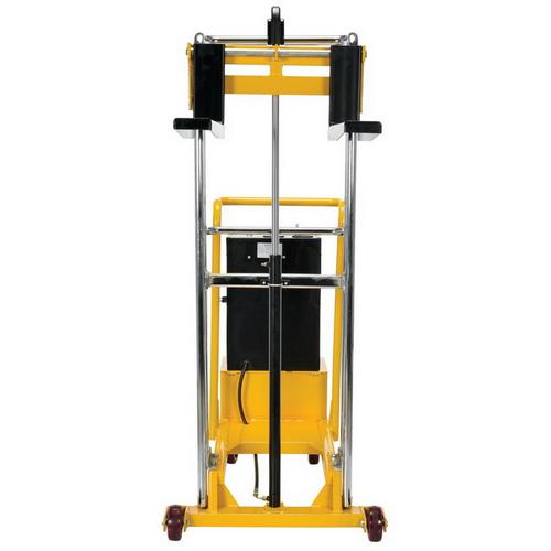 DC powered portable hydraulic lifts are user friendly providing reliable, powerful lifting when moving and positioning loads. Includes removable platform for operations requiring forks. Units roll easily on two rigid and two swivel poly-on-steel casters and include a foot operated brake. Not for use with pallets. All welded steel construction with chrome platform and uprights. Each fork is 4."W x 2."H, the fork length is the same as the platform length. Overall fork width is 22". Units run off one (1) 12V battery.