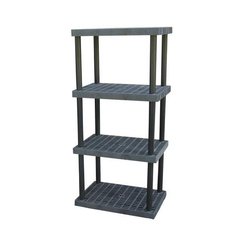 This Plastic Bulk Shelving & Storage is the largest all-purpose industrial-grade shelving system in the industry. The unique locking collar system lets you choose whether to build up, out, or both. This shelving has rigid high-density polyethylene panels and a grid top that allows liquids to flow through, promotes air circulation and prevents dust build up. The entire system is chemically resistant, making it an ideal choice for HAZMAT storage or any other applications, corrosive or not.