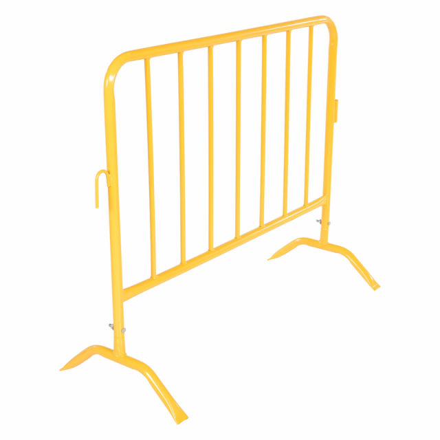 Attractive and functional design ideal for directing personnel. Interlocking portable railing has many commercial and industrial applications. Easy to move to meet changing needs. Upright bars are vertically spaced at 5-7/8" intervals for the light-weight barriers and 5-3/4" for the heavy-duty style. Each railing includes connectors to attach multiple units together to form long runs. Overall size is 102"L x 40"H. Feet are removable so railing will lay flat for shipping and storage. Rugged welded steel construction.