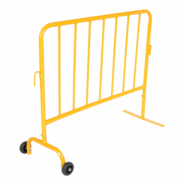 Vestil, PRAIL-48-Y-WF, Steel Crowd Control Interlocking Barrier with Feet (1) Wheeled (1) Flat, 47-1/2" Length, Yellow
