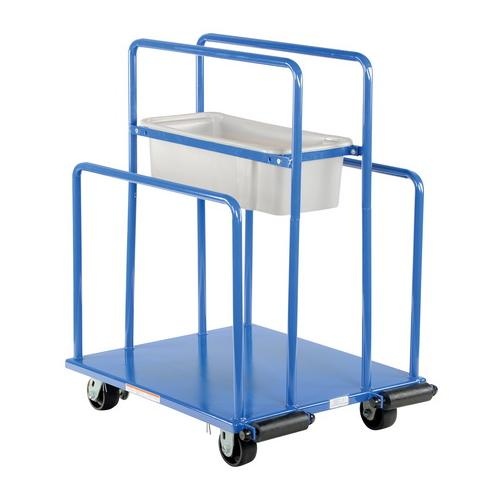 The Panel Cart is perfect for handling items such as sheets of paneling, plywood, doors, and lumber. A convenient, removable plastic basket is included for carrying smaller items and tools. Rollers are provided on one end for easy loading and unloading. Two (2) rigid and two (2) swivel 4" x 2" phenolic casters are included. Ships knockdown, assembly required. Steel construction. Baked-in powder-coated toughness. Overall height is 403/8".