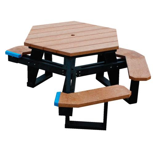 Vestil, PT-PHX-3944-BKCD-ADA, PT-PHX-3944 Cedar & Black Hexagon ADA Compl Picnic Table