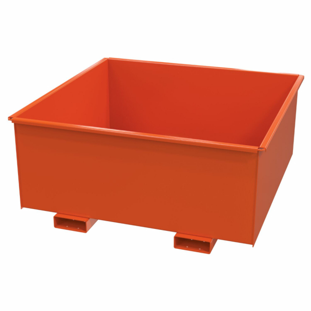 With a rotator box hopper, products can be swiftly moved between locations. A heavy duty construction and high capacity allows a substantial amount of products to be transferred in a single load. The unique design is best used in conjunction with a forklift rotator; the built in fork pockets provide stability during rotation as well as with standard forklift movement. The hopper has a powder coat finish for baked in added toughness. (Forklift rotator not included)