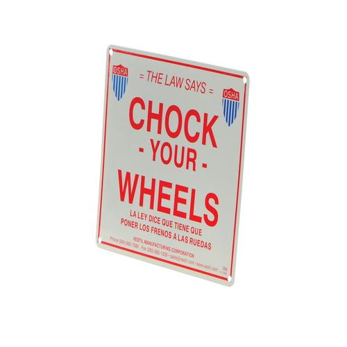 Optional Aluminum Enamel Wheel Chock Sign warns trucks and dock workers to chock their wheels as required by law. They are weather resistant with bright red lettering that provides high visibility. The sign has four mounting holes. The reflective sign is available for docks open at dawn and dusk.